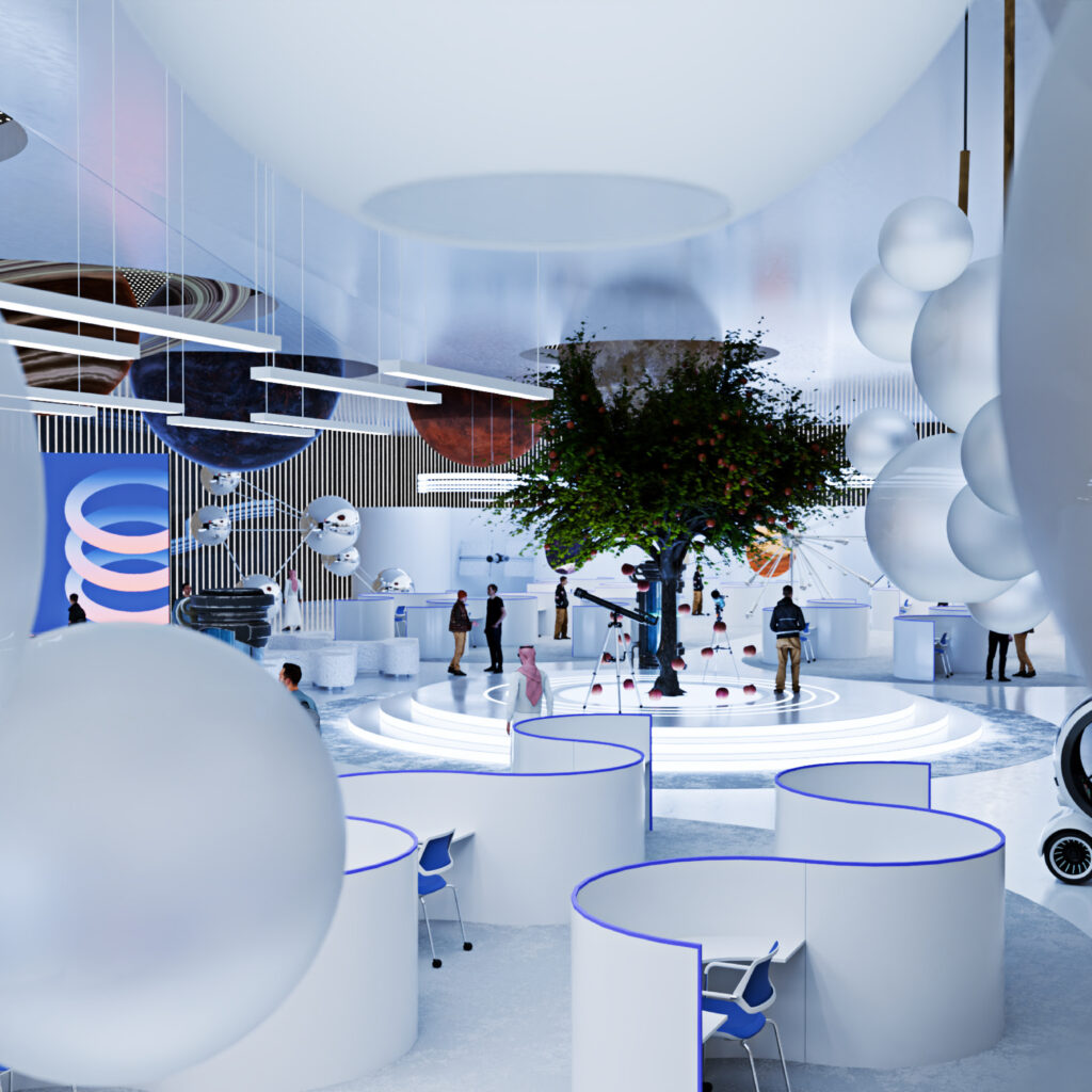 The Atom: A Foundation of Physics: Atom-inspired motifs, with their curves and orbits, represent the fundamental building blocks of the universe. These forms guide the design language of the event, seen in architectural elements, lighting designs, and even the trophies. This ties the event’s aesthetic to the precision and elegance of scientific principles.