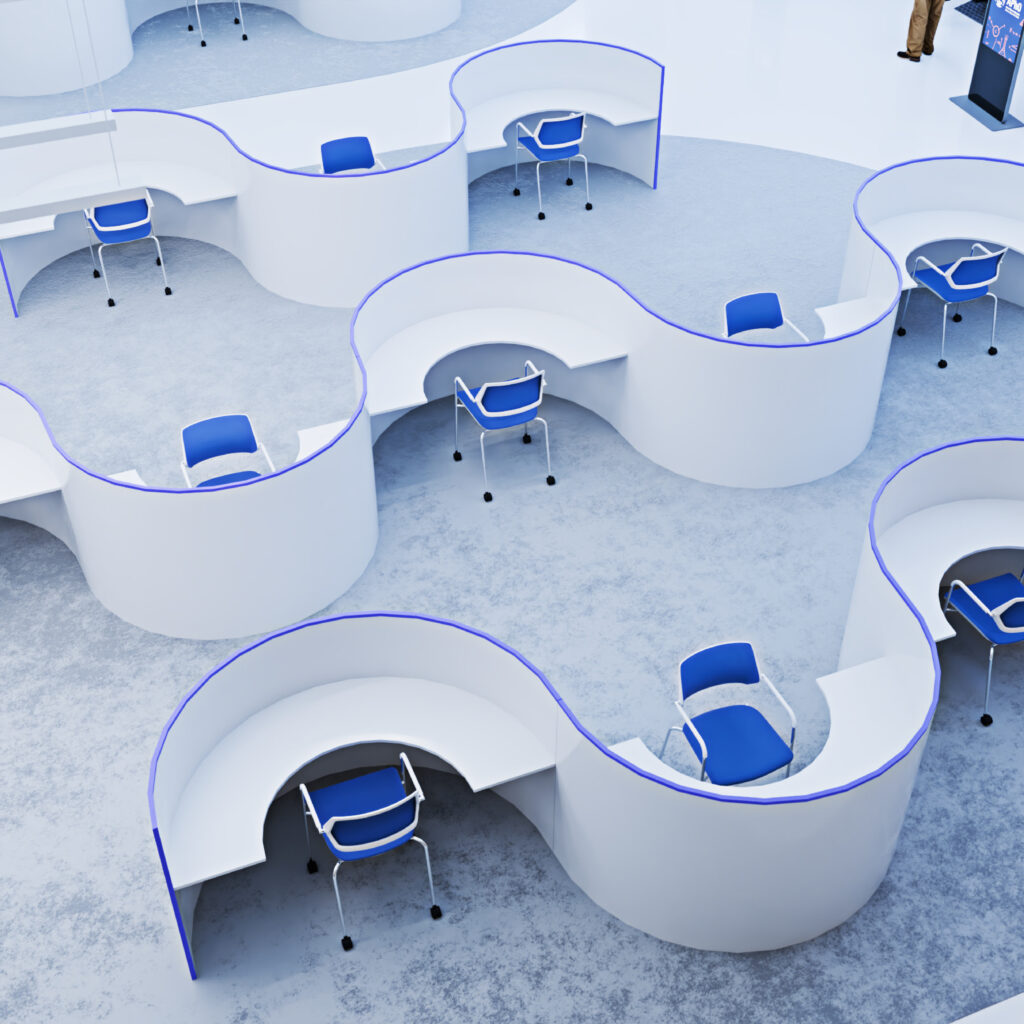 The concept focuses on highlighting the diversity of advanced screen technologies offered by the company through an engaging and futuristic spatial experience.