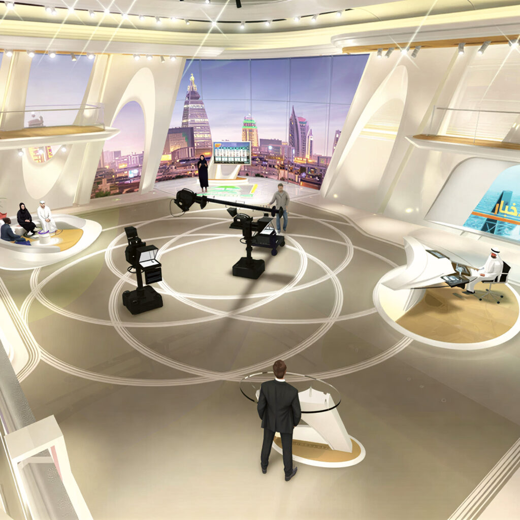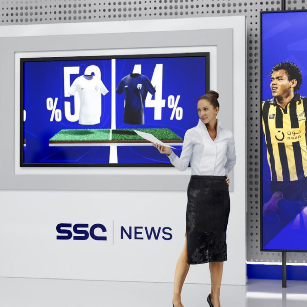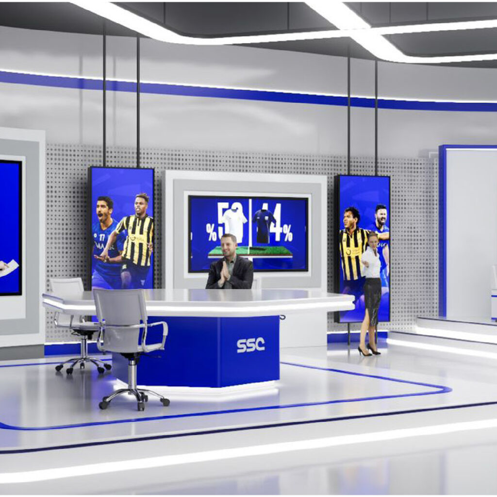 Welcome to the innovative world of MBC Sports Pro, where our modern multi-set design revolutionizes sports broadcasting. Featuring an array of strategically placed cameras and a seamless integration of curved and traditional screens, our set offers unparalleled versatility and visual impact.